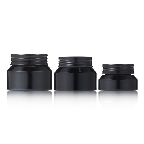 Gran capacidad 200 g de embalaje cosmético redondo transparente vacío con tapa negra fuselaje de vidrio